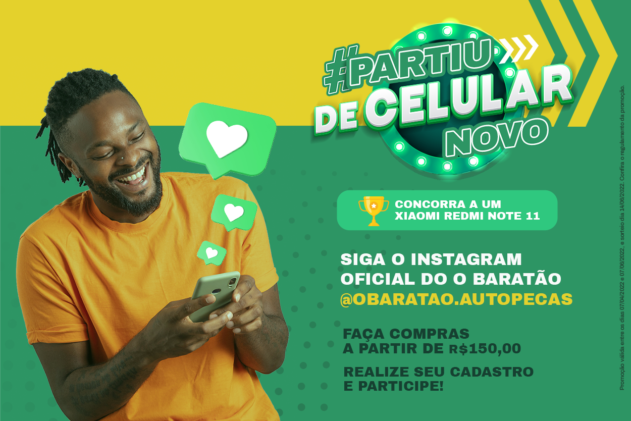 Já pensou em comprar o melhor em autopeças e ainda ganhar um celular novinho em folha? Pois com a promoção #Partiu Celular Novo de O Baratão, você pode concorrer a um Xiaomi Redmi Note 11.